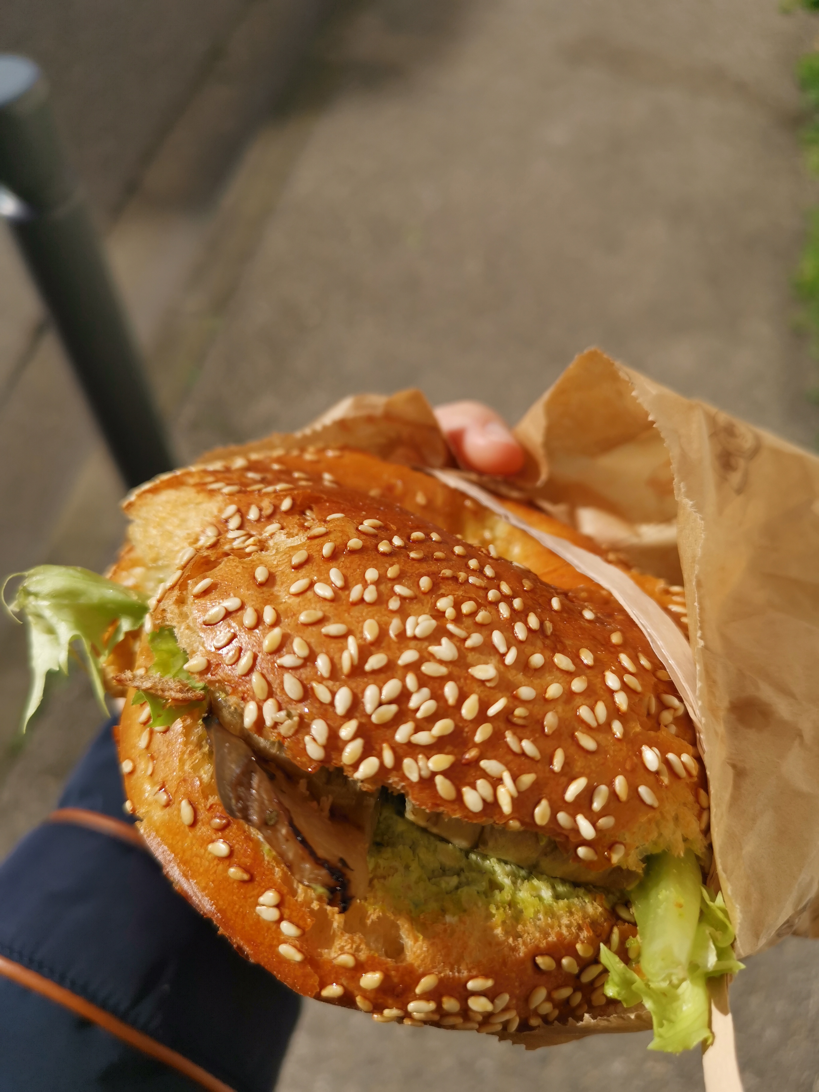 Bon bagel maison, pas assez copieux à mon goût pour un repas sur le pouce. Cela aurait mérité un fromage en plus, par exemple mozzarella.