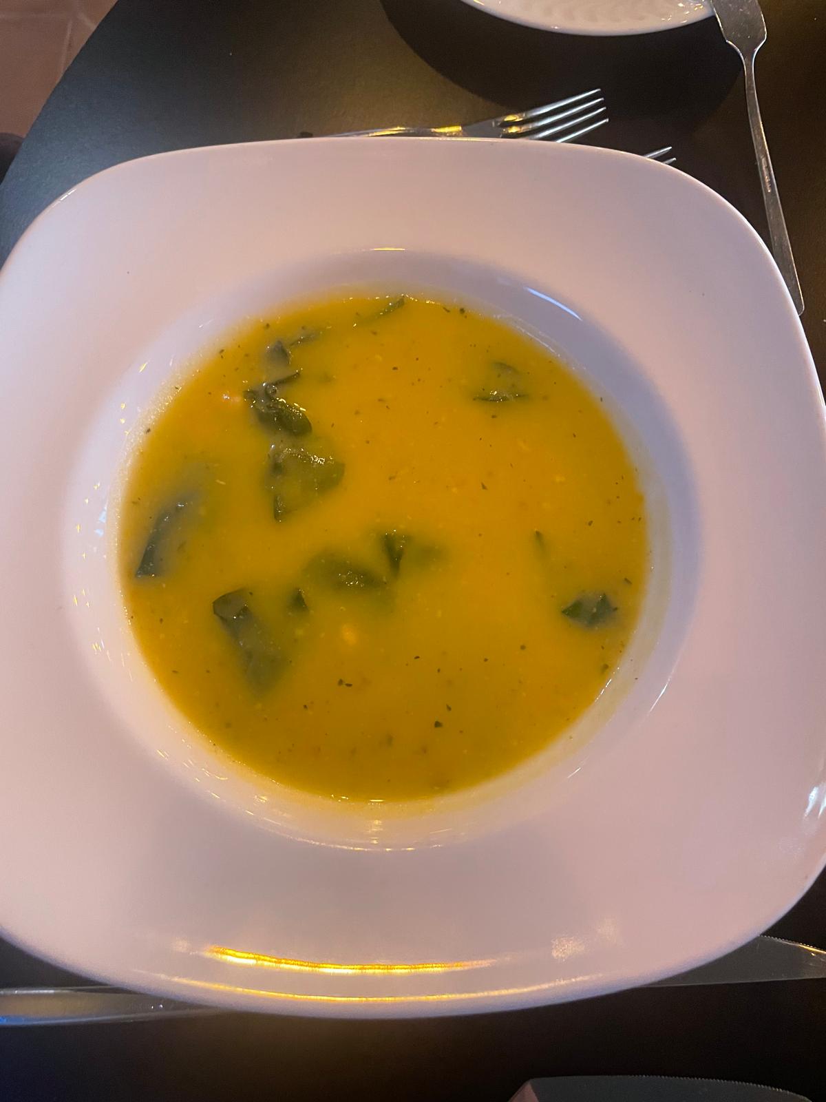 Pas mauvais mais manque un peu de goût/ d'épices. Quantité largement suffisante pour une entrée. Le pain est bon (graines ou nature)