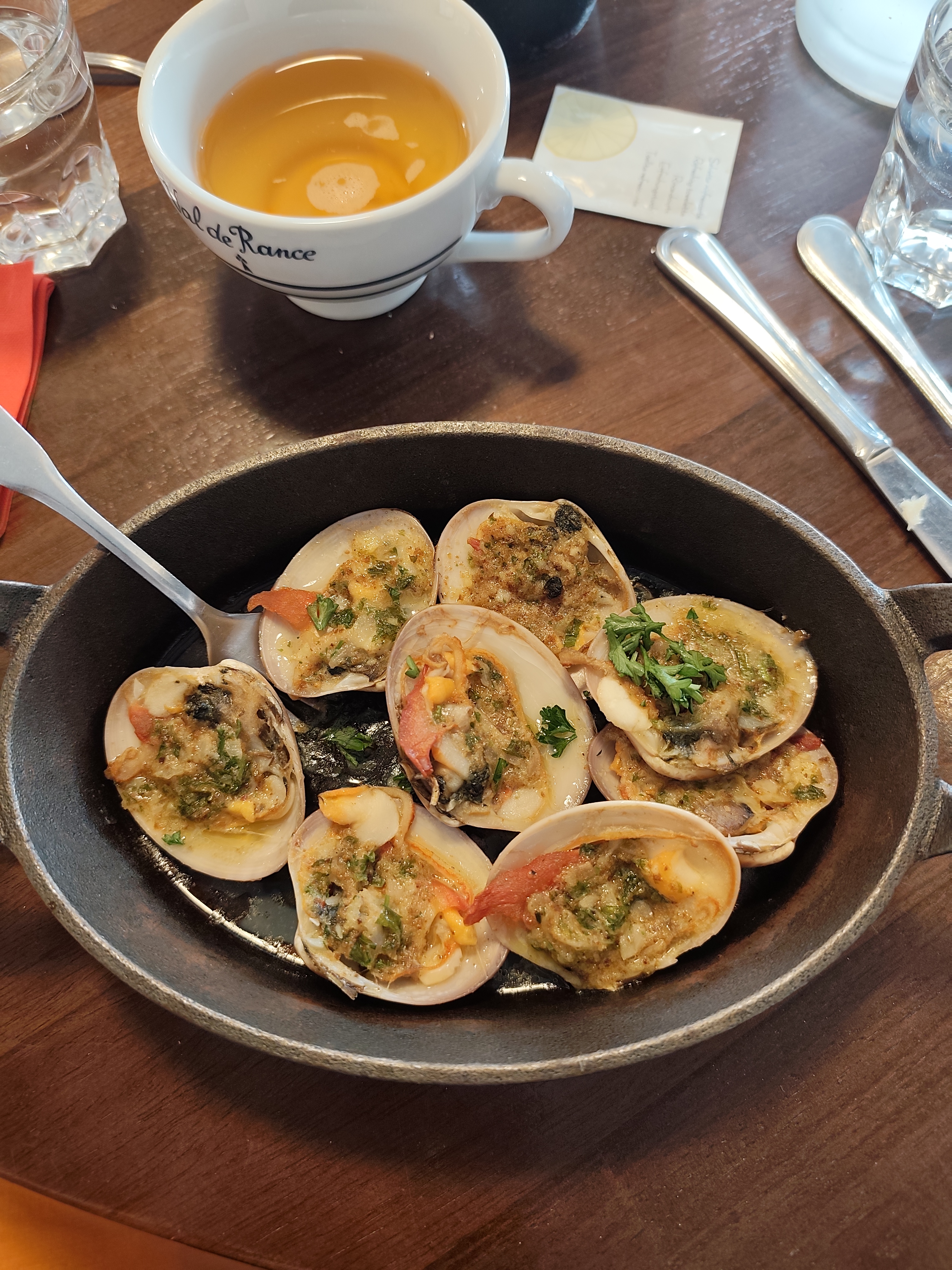 Vernis (coquillage,) chapelure, beurre à l'ail et au persil